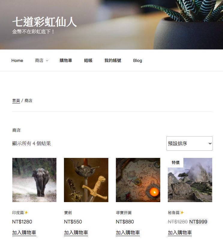 透過這次的實際操作,我們能隨心所欲的選擇想經營怎麼樣的店,想要賣什麼商品,以及定價也是隨自己高興(當然實際情況不能定太誇張XD”不然等著虧本´;ω;`)。可以從首頁看出我們的主軸是尋寶,把產品線的故事主線呈現在首頁,猜到我們是賣什麼了嗎😎 😎 ?沒錯!!!我們是賣「遊戲片、尋寶紀念品」,遊戲片的主題又以地域去做分類,首站是到了秘魯,過來再到第二款印度之篇章,因為出了第二款遊戲片,所以我們把第一款商品做特價販賣,展現商業頭腦的小巧思ㄎㄎ😂 😂 😂 紀念品的發想概念是因為想結合品牌宗旨-人們都能開開心心的,既然如此就推出了遊戲裡戰士所拿的寶劍,看著它就能想到,沈浸在遊戲世界裡的快樂!之後還陸續推出尋寶拼圖,把虛實世界的商機帶進真實世界!