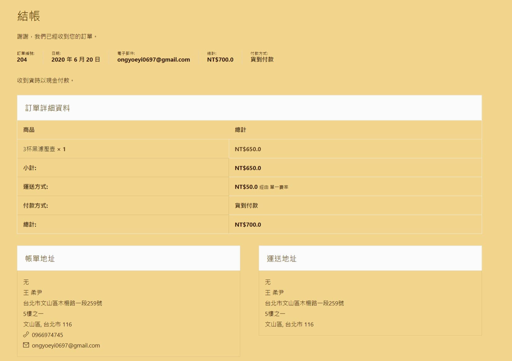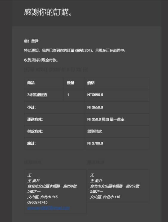 老師在教學影片中,要先安裝「WP Mail SMTP」,才能將發送訂單,這部分真的很難!!再加上我的電腦是英文版本的,因此在老師教學的影片中有些步驟畫面其實是不一樣的,因此得花時間對比,真的快累死了,還好最後有成功架設到!當發送去信箱的那一刻,整個心情好興奮哈哈,終於成功了!