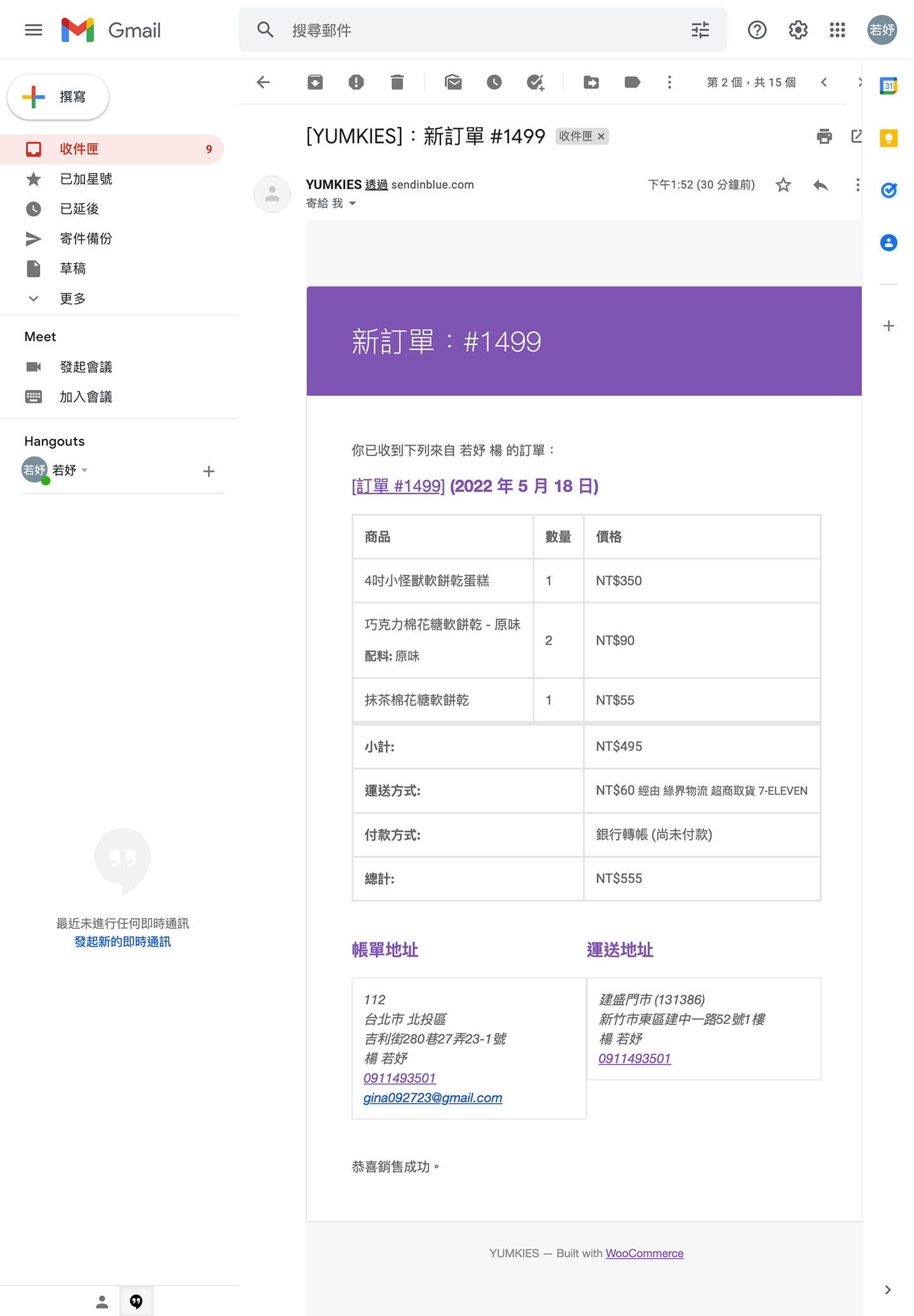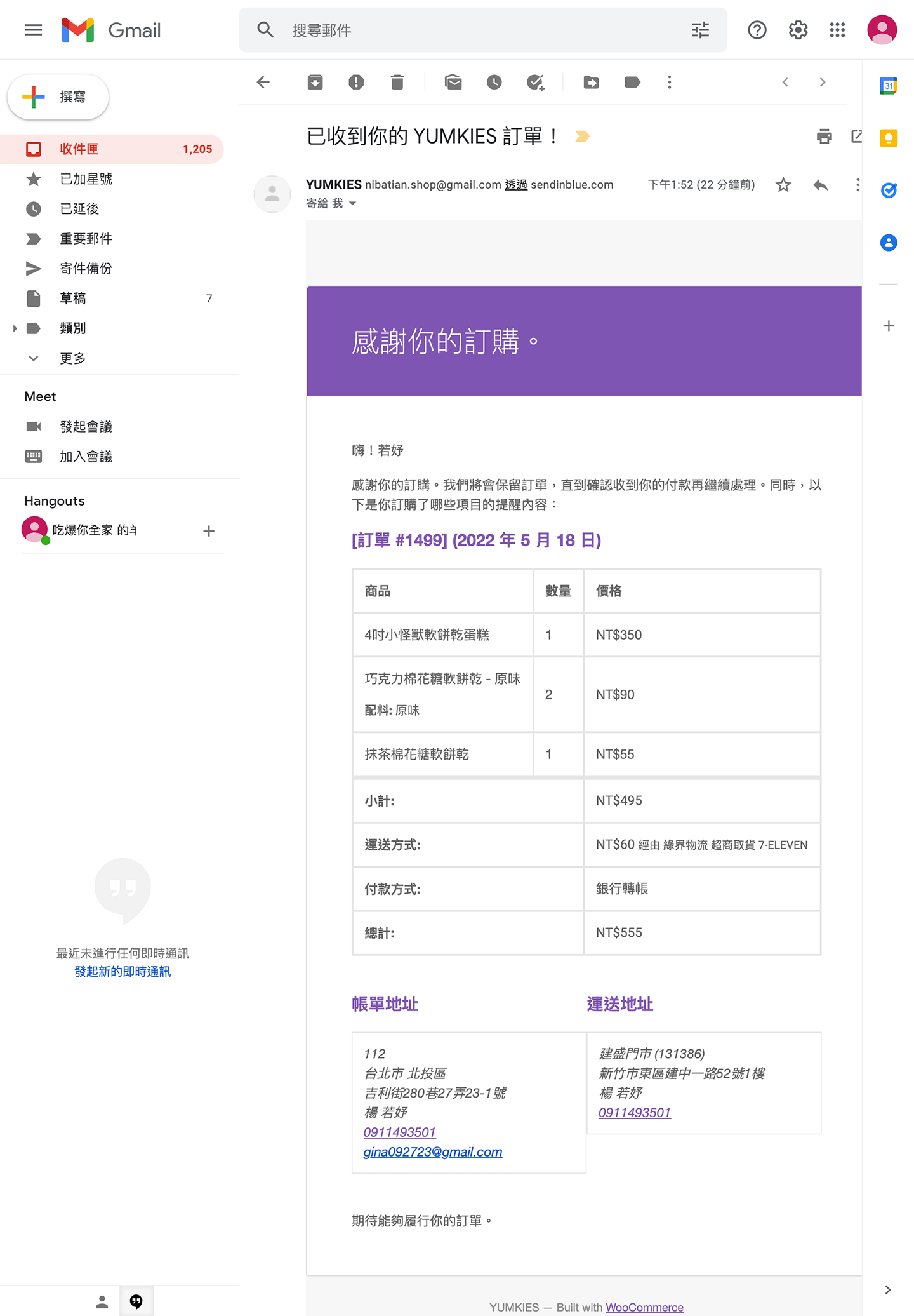 消費者訂單確認Email