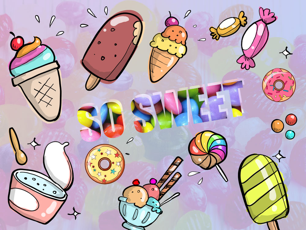 作業三是「彩虹糖果」,這個作業的話就需要用到剪裁遮色片,這個會稍微麻煩一點,且還需要對圖層做濾色等等的功能,非常需要顧及畫面整體性。