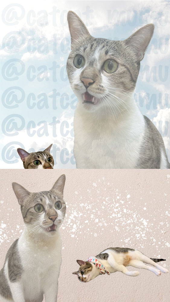 作業六是「自行創作」,我選擇用我家貓咪作為主題,沒有太刻意的排版,只是利用他好笑的表情及動作協調的配置在畫面中。