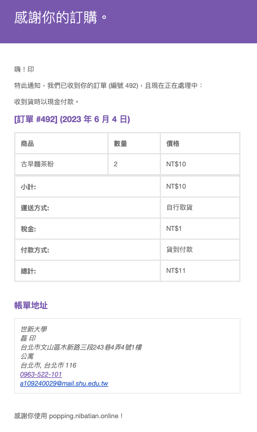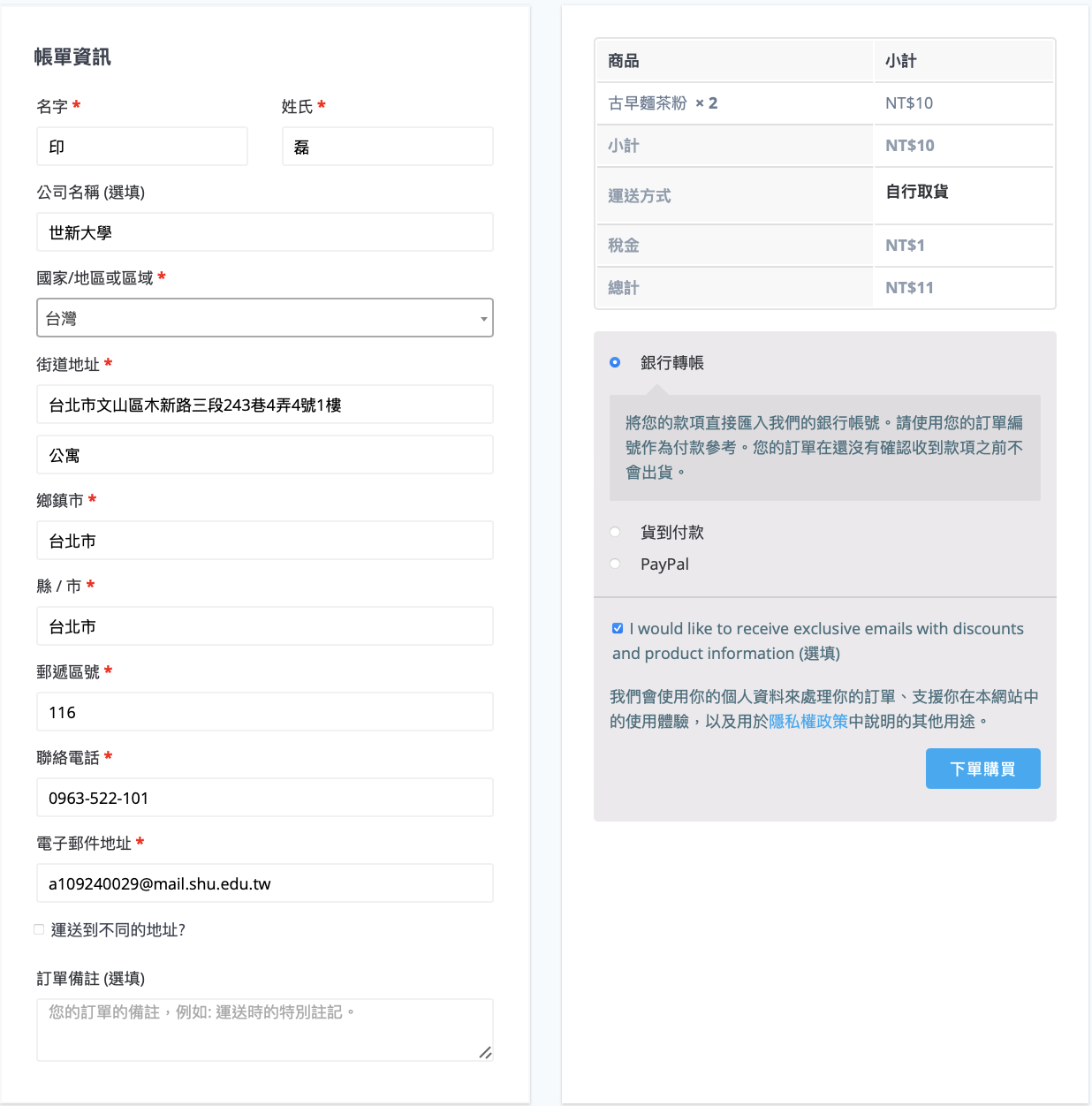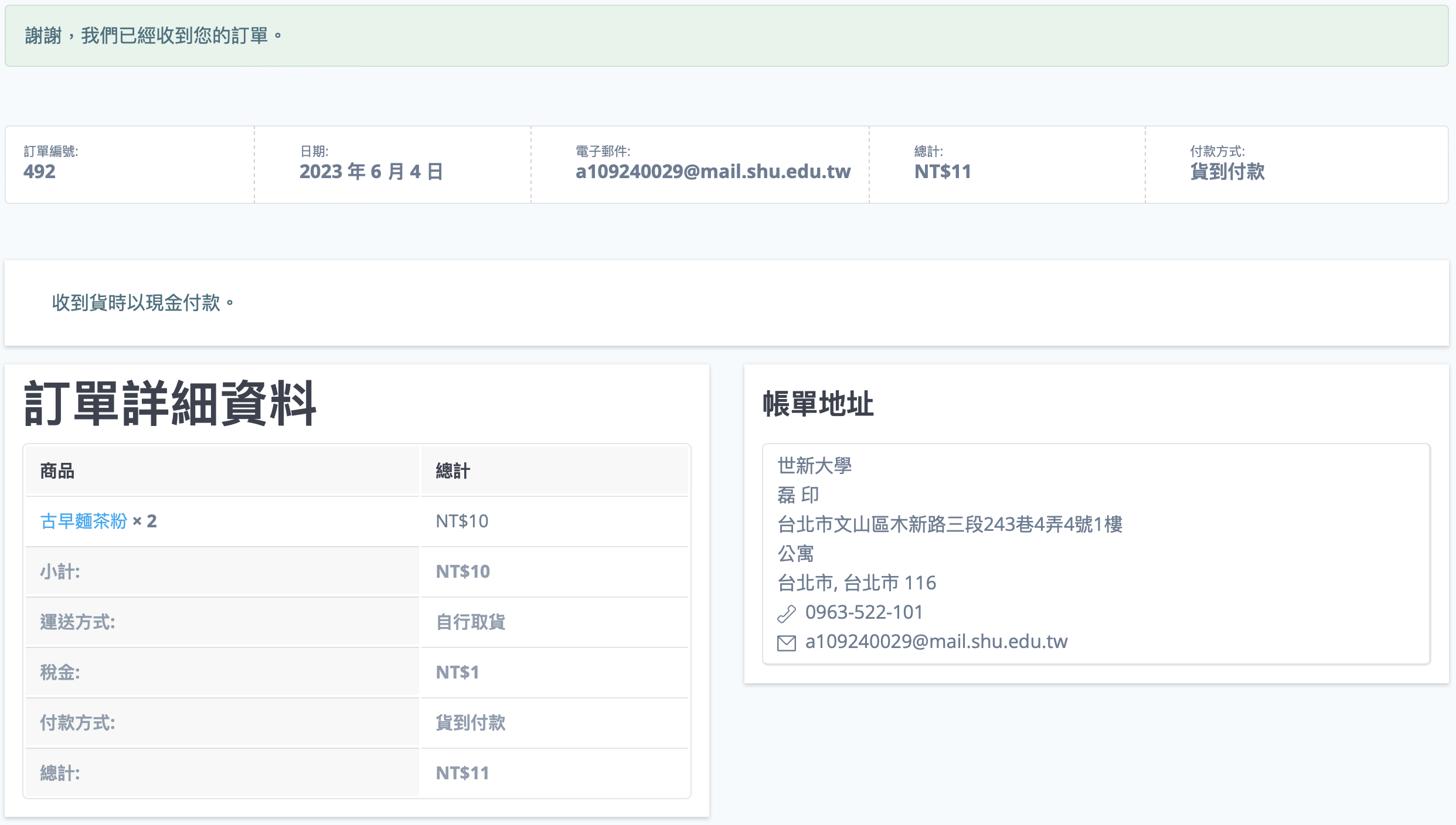 這個網站雖然很陽春,甚至可能還有許多問題是需要解決的,但能夠成功上架商品、放到購物車到最後成功下單,並能在後台管理,代表基本的架構還是能順利運行,也為我們的網站架設知識與電商相關知識有了更好的幫助與了解,這堂課程不僅有理論,更重要的是實作,讓我們能夠學以致用,相信會是一個非常好的經驗累積,也是真的很棒的一堂課!