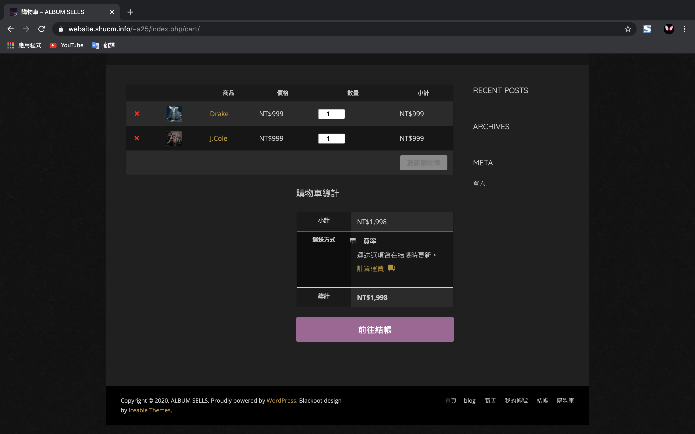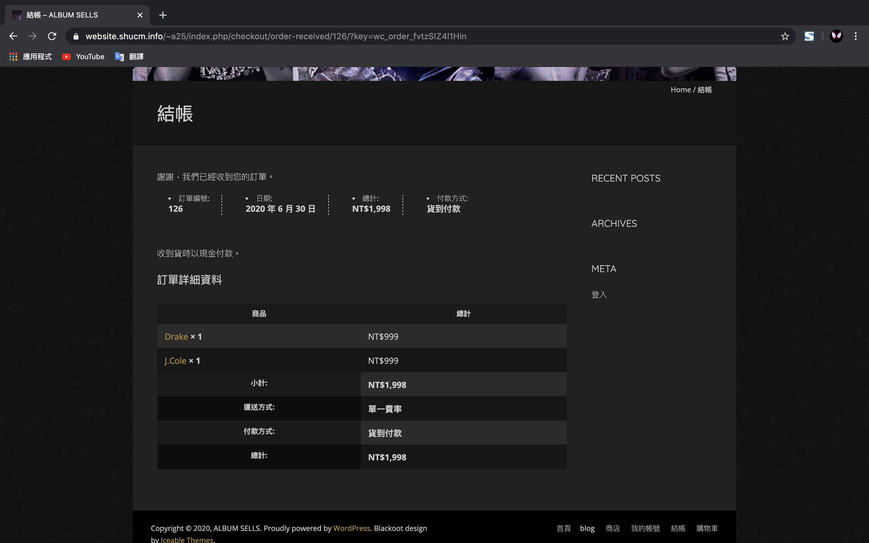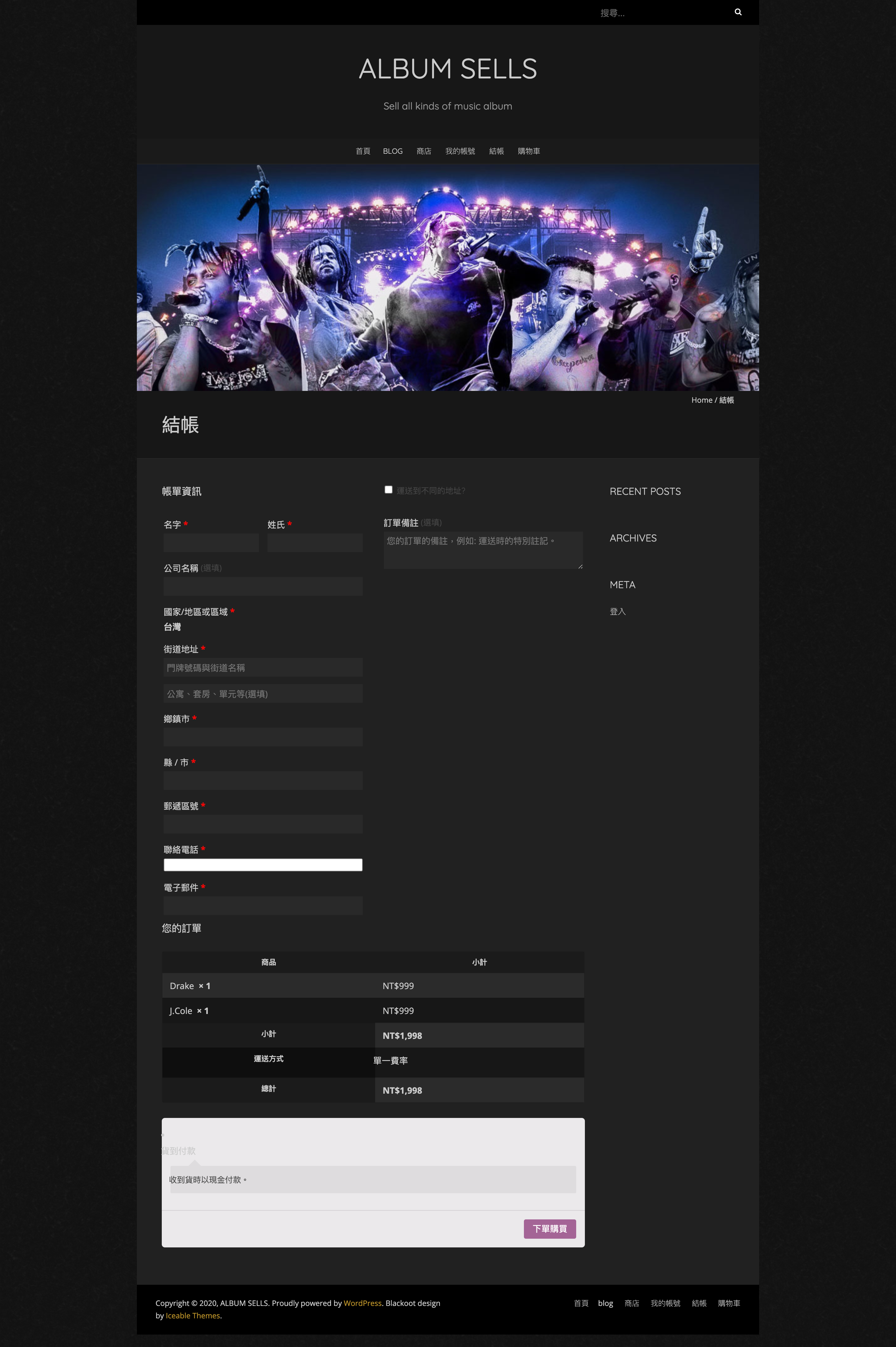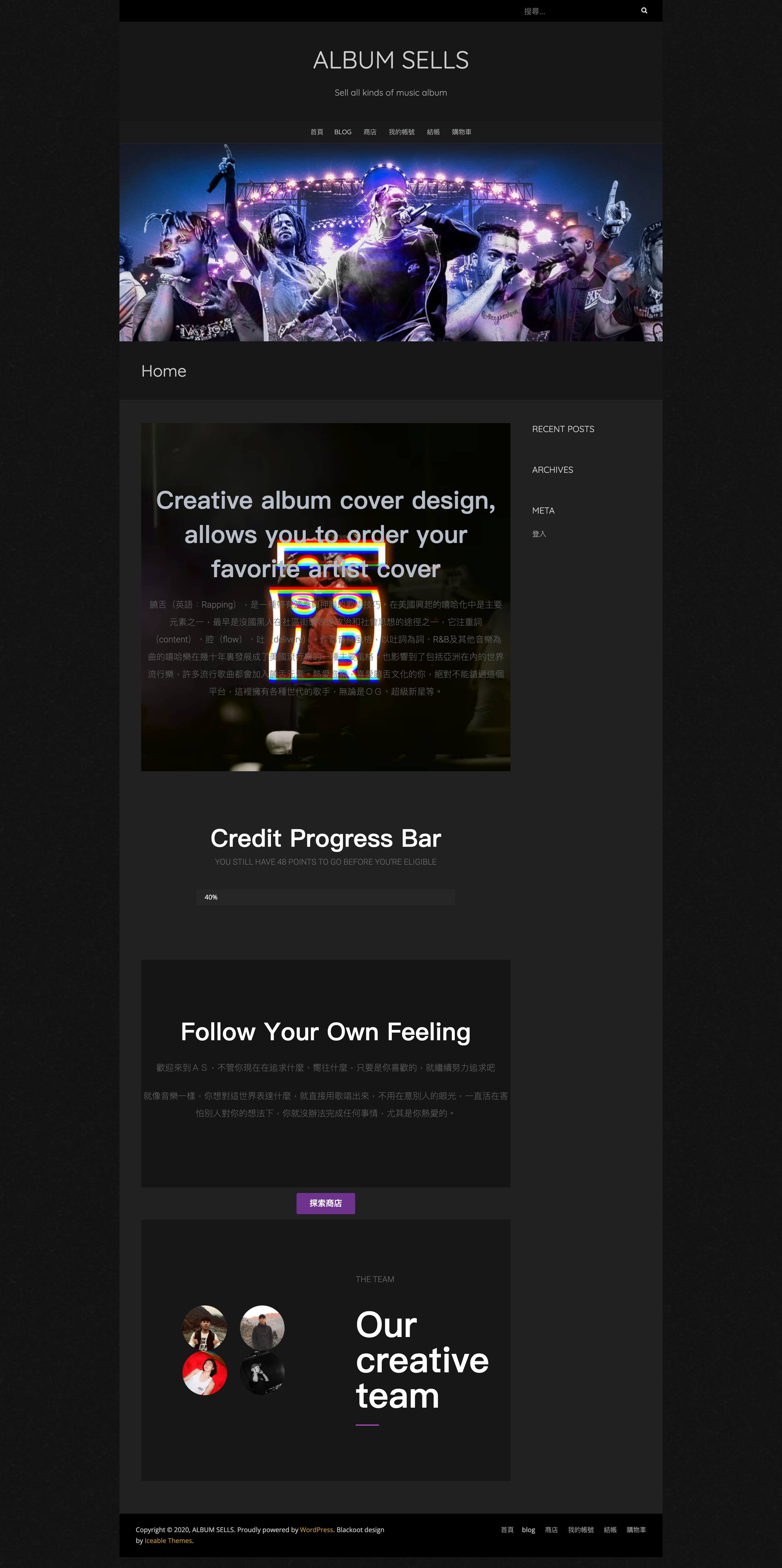 我們的的商店是販售音樂專輯,以黑色風格為主題,雖然較憂鬱,但我們認為這才是我們的特色,其中,為了致敬偶像,我們也特地在首頁放上已故歌手的演唱會連結,表示我們的致意。