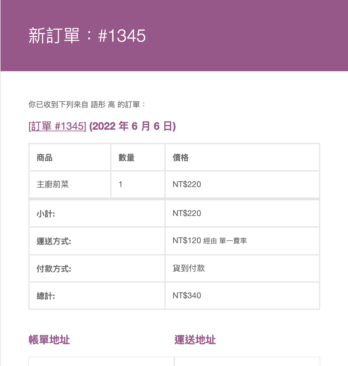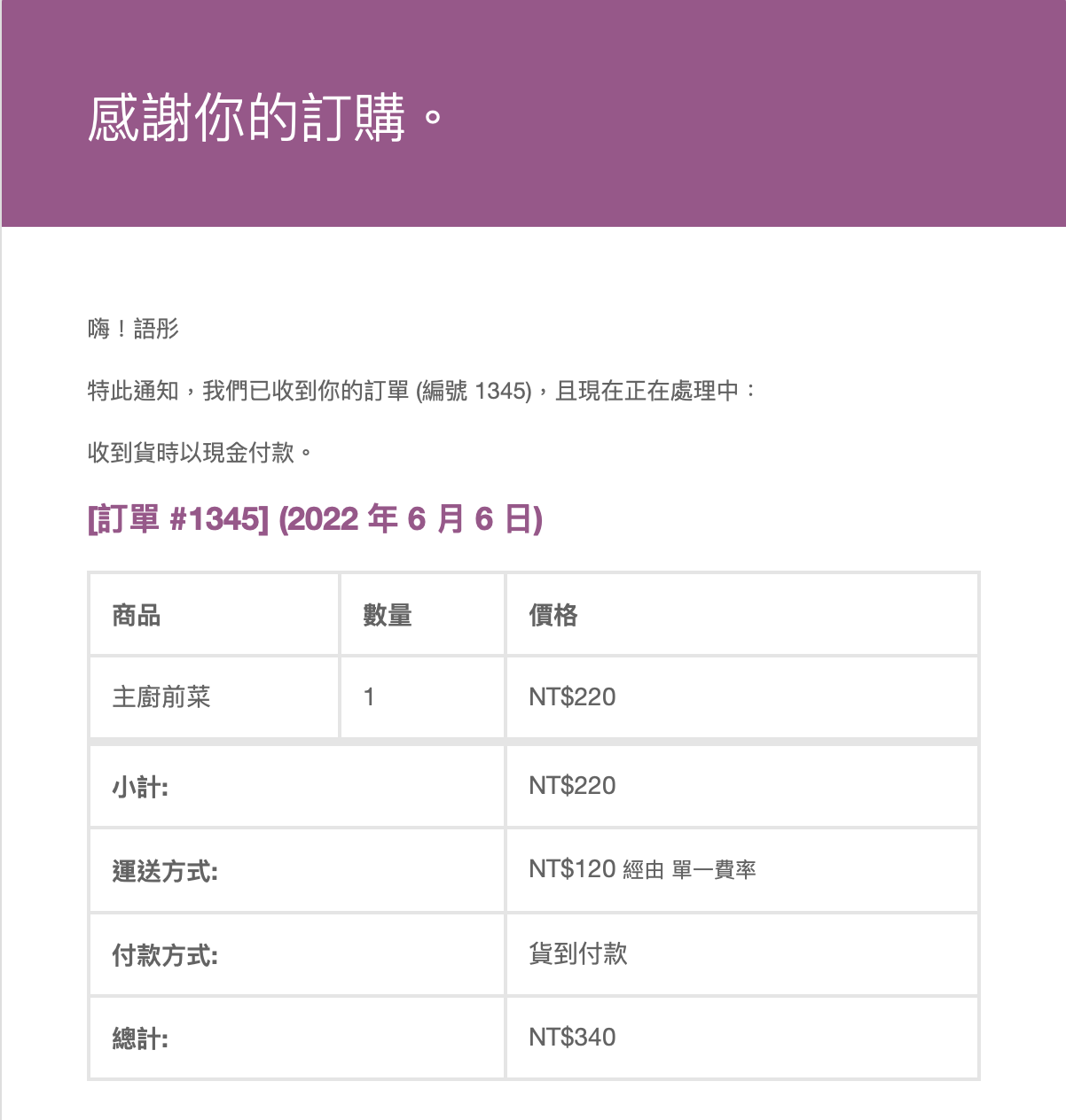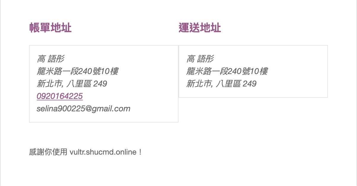 顧客購買成功郵件