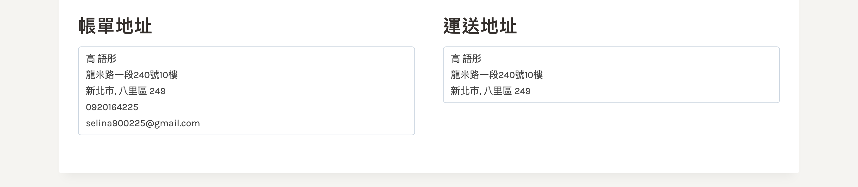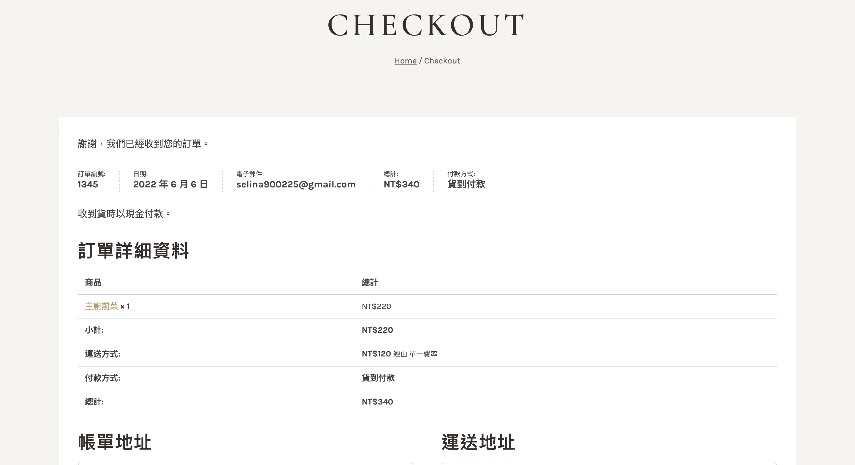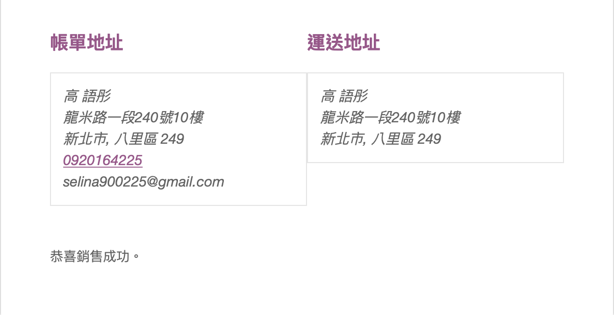 結帳成功頁面