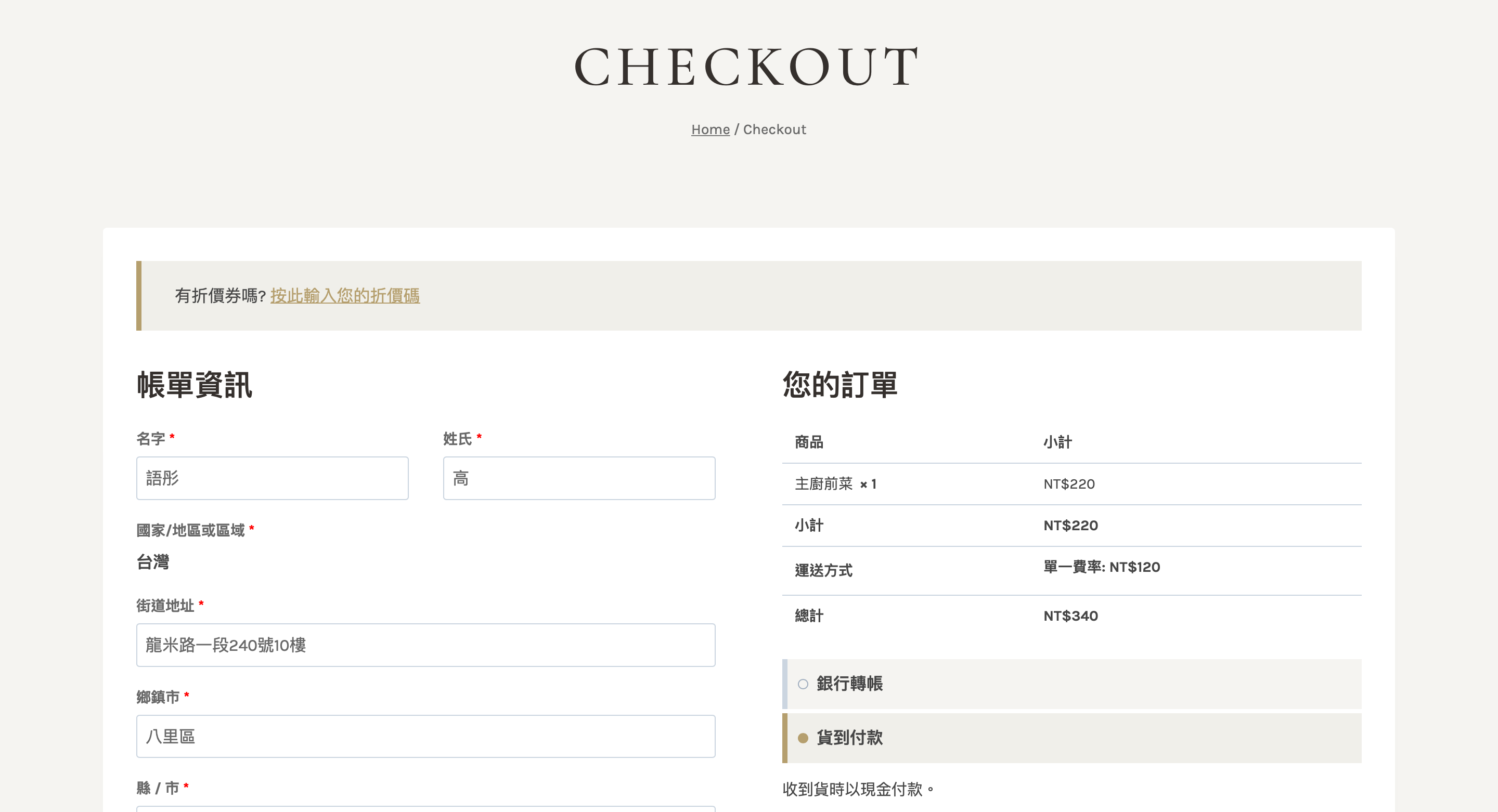 結帳頁面