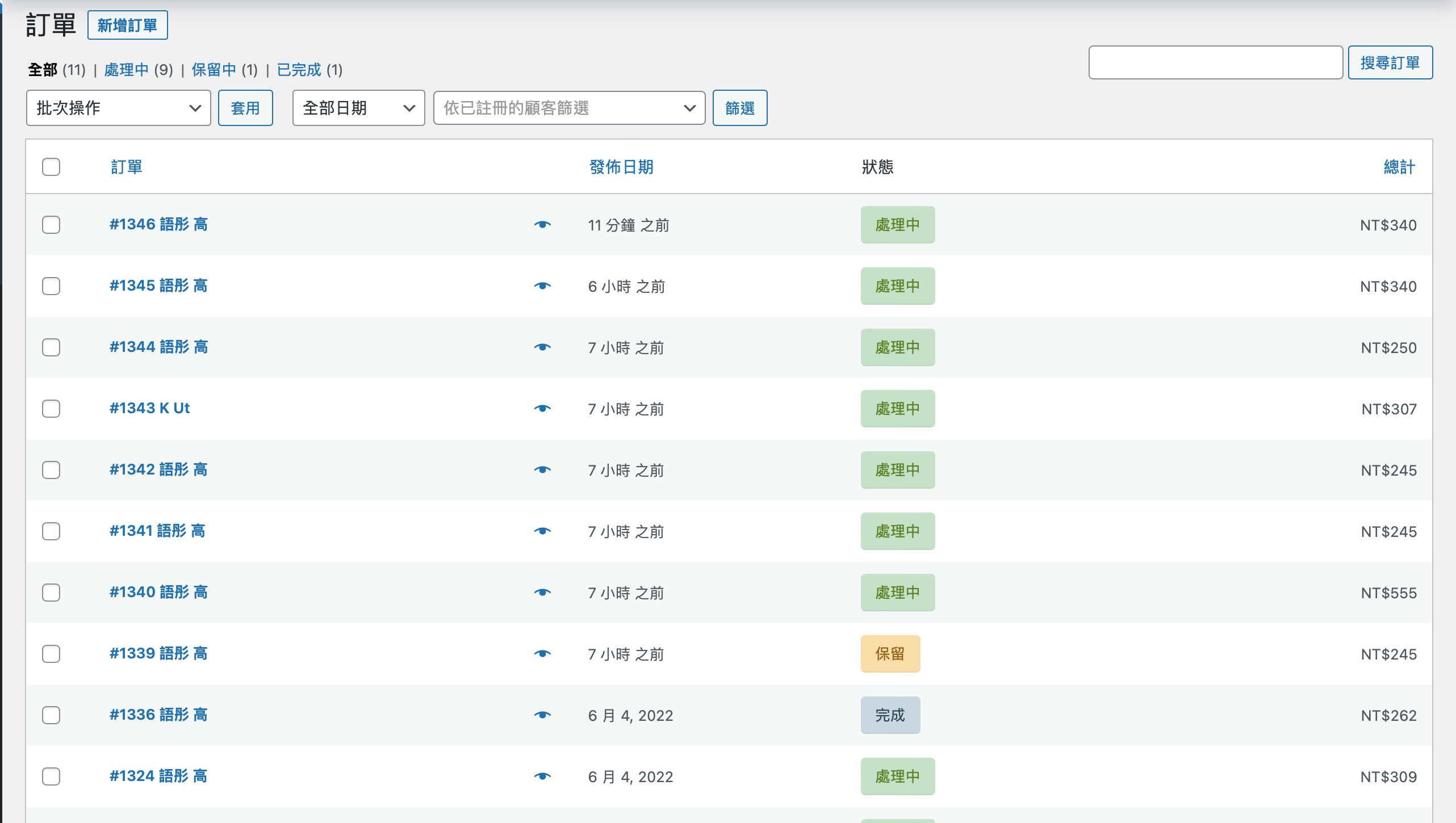 顧客訂購紀錄