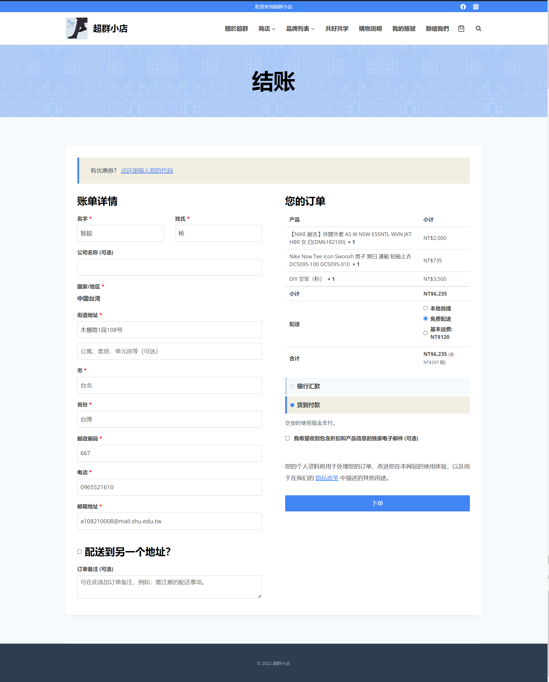 开始尝试架设电子商务网站,原本以为会很困难,因为之前没有这些基础,没想到依照着教学影片的讲解,和网站等自带的方便实用的软体,让我们都能够轻易地上手。从没想过原来一个网站是这样架设出来的,加上与过去所学的AI、PS技术应用的搭配,并且老师会让每一组同学更新进度,一方面是让我们看别组的进度进而鞭策自己,另一方面是让大家相互学习,观摩别组的作品可以使得陷入迷思的我们得到一些灵感。