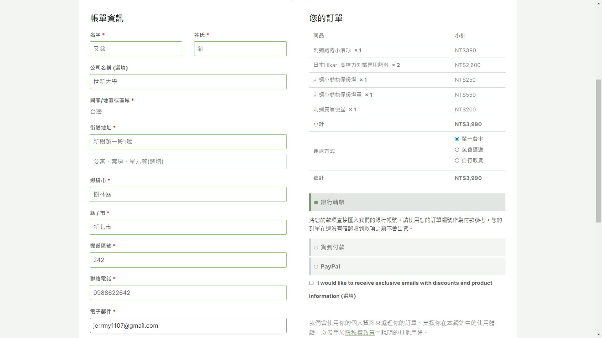 賣家接收訂單