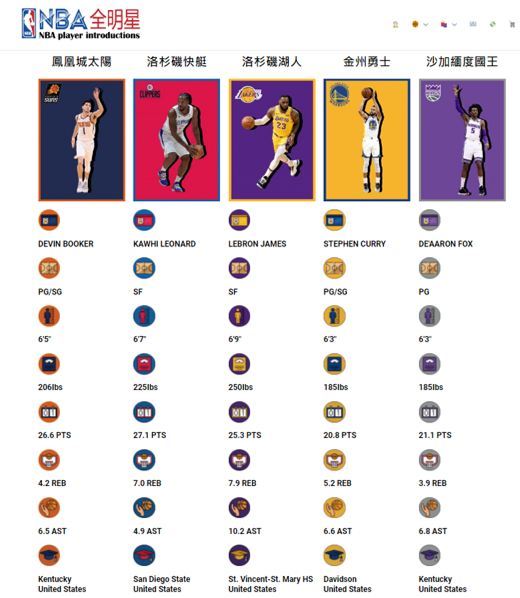 以下是「NBA全明星」的網站: