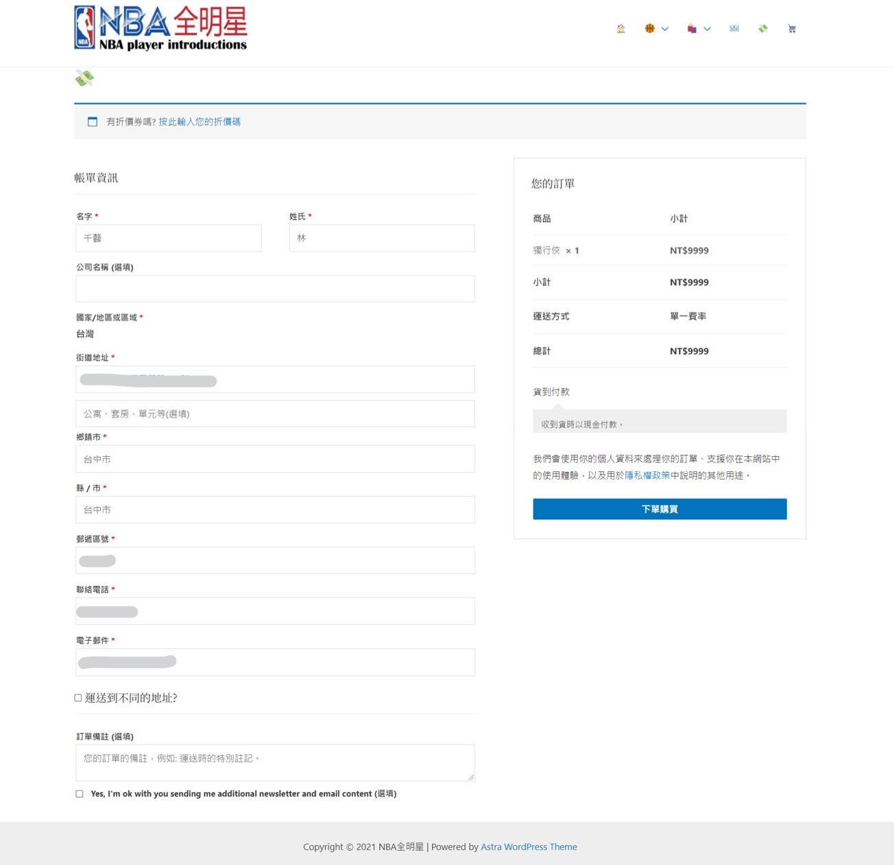 填寫資訊的結帳頁面![]()
