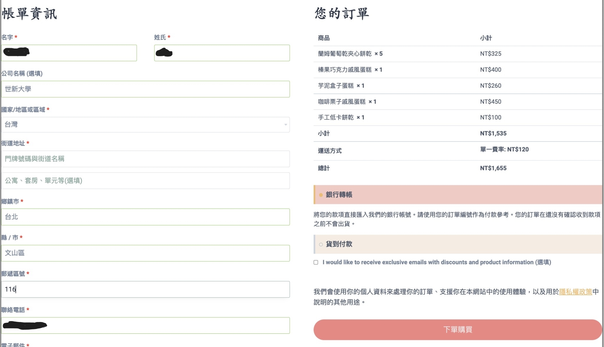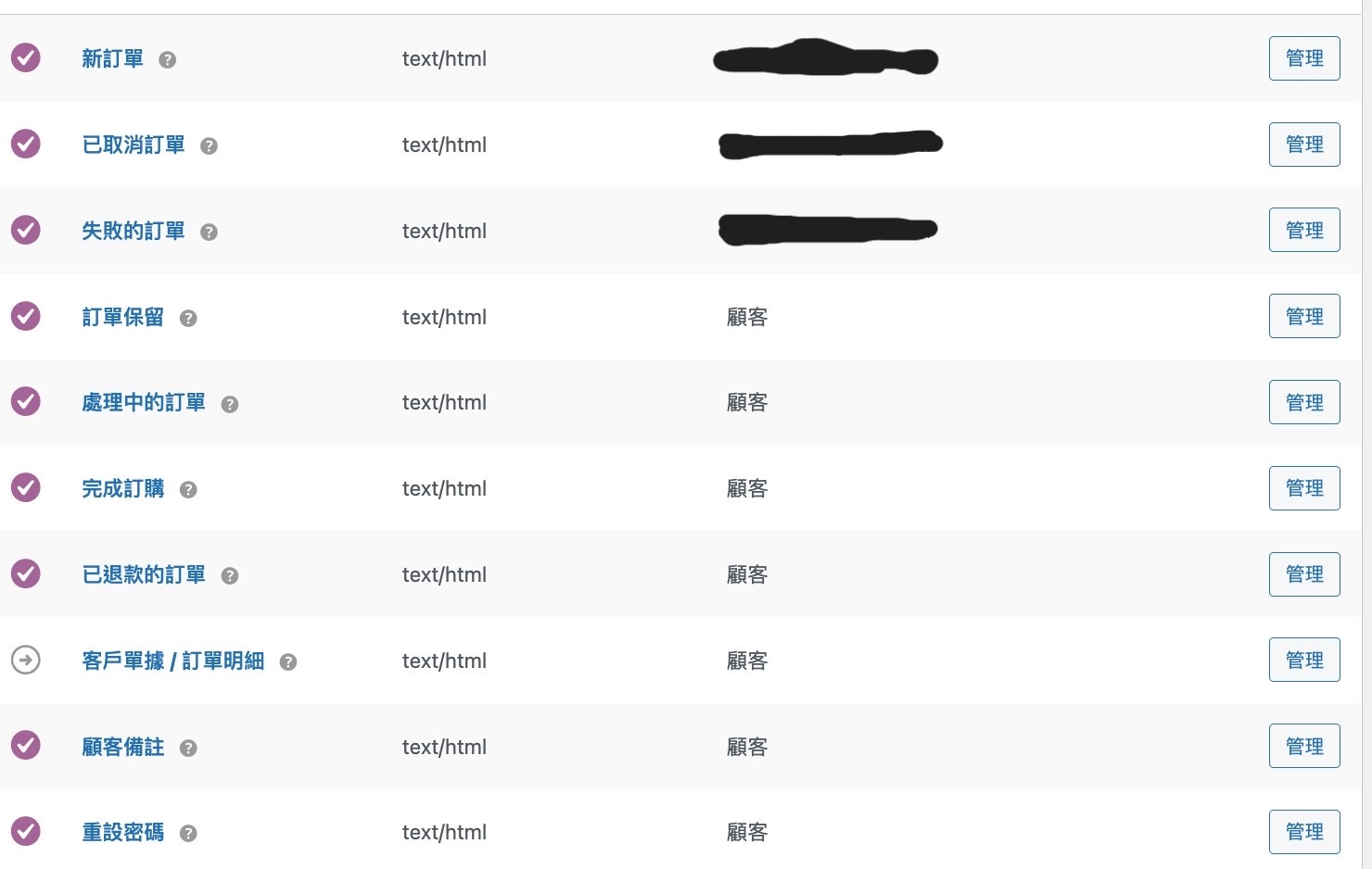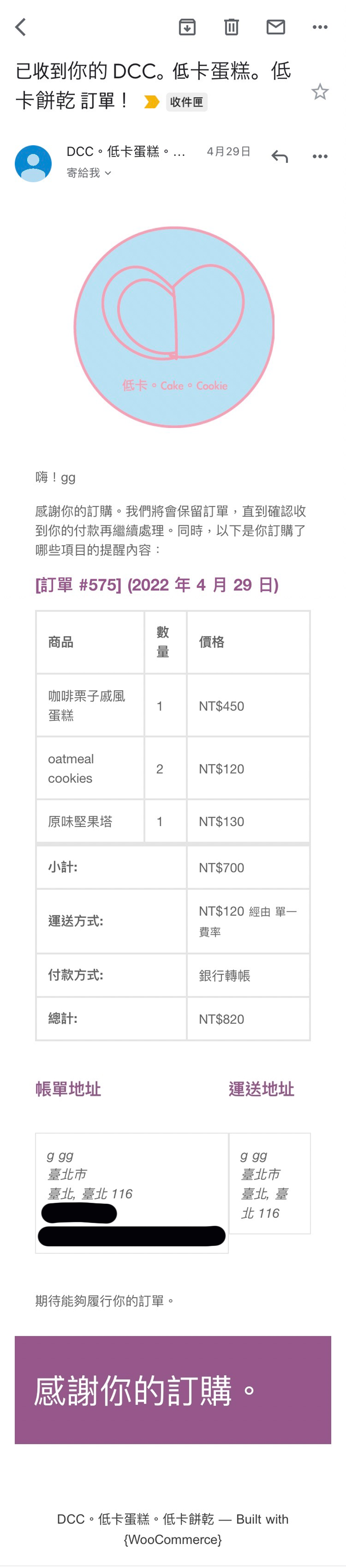 顧客訂單成功通知
