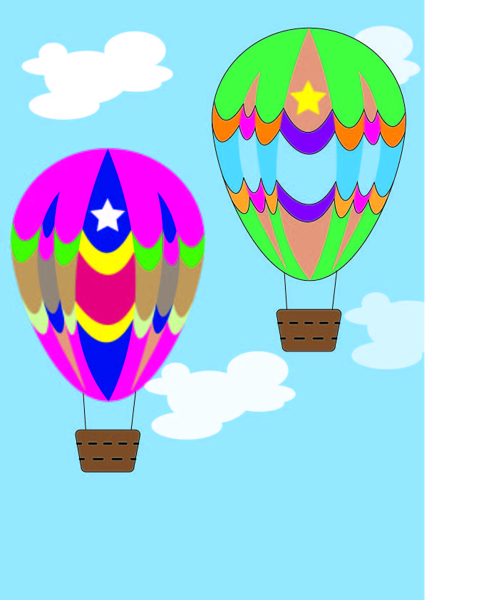 第二個作業,繪製熱氣球,首次嘗試複雜的鋼筆曲線和區塊填色,意外發現自己滿喜歡的技術,那就是原來白雲是運用幾個橢圓形就能做出,且加上透明度的調整,就變得很逼真!