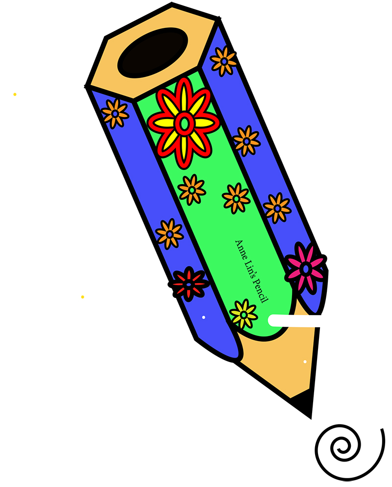 由上圖,可以看到老師教我們用矩形工具畫出一隻屬於自己的鉛筆,再加一些花來點綴,在這個過程我學到不一定要自己畫,用一些圖形可以做出一支特別的筆。