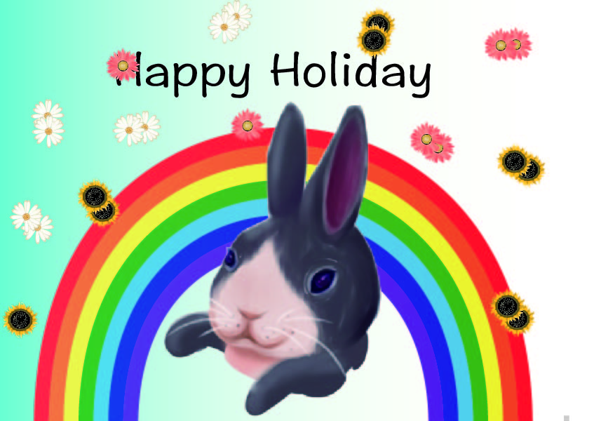 終極版我設計了一個我最愛的兔子結合一些背景,雖然看似普通,但是讓我的背景色彩整體看起來更豐富一點。希望老師不會因此而覺得草率!